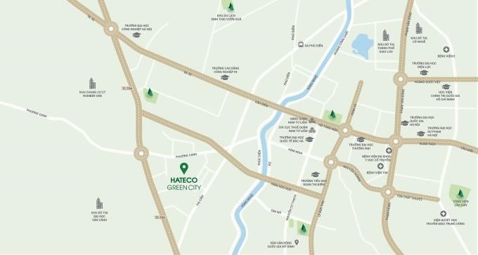 The project is located on a 40m wide road in Xuan Phuong Ward, Hanoi. This is a planned route from Trinh Van Bo Street connecting with Road 70A to Ring Road 3.5. The project has a lot of potential when located in a synchronously planned area with many amenities such as parks and school systems right next to the project. From the project, it only takes 5 minutes to connect to Thang Long Boulevard, Military Technical Academy, East Asia University of Technology, FPT Polytechnic College, Phenikaa University Hospital, 10 minutes to My Dinh Stadium, BigC Thang Long supermarket...